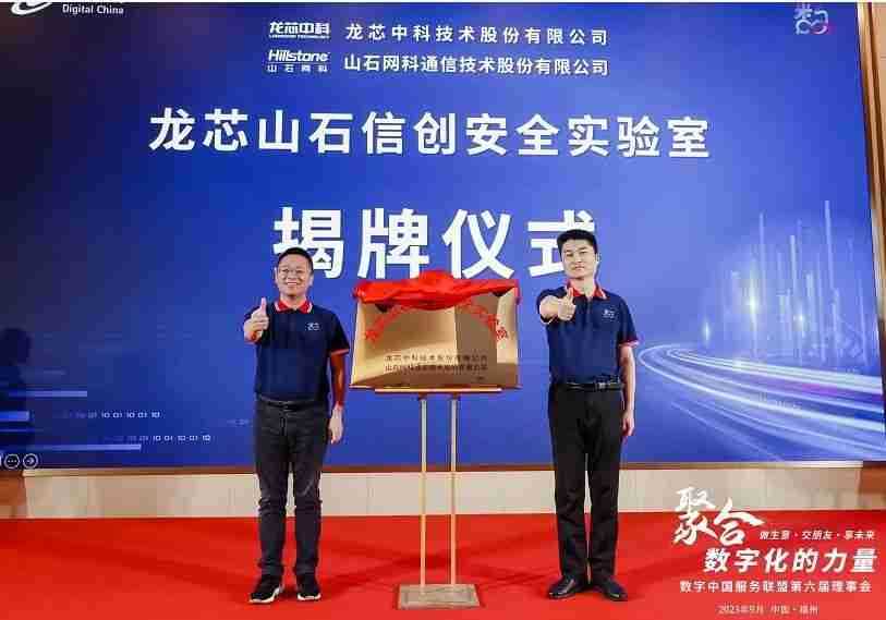 联盟秘书处马郭波对数字中国服务联盟过往的工作进行了总结汇报,,,回顾了联盟近三年来发展壮大历程,,,,展示了联盟伙伴间交流合作的创新探索成果:从解决方案资源池建设、、、、工程师共享计划尝试,,,到全聚合公司平台打造。。。。并简单阐述了对于联盟的未来发展思路的规划与畅想。。。正因有了全聚合的平台,,,联盟成员之间的合作再上新的台阶。。。现场,,,两家联盟成员单位领导:山石网科首席运营官叶海强与龙芯中科副总裁张戈上台共同为龙芯山石信创安全实验室举行揭牌仪式。。。此次合作实现了优势互补,,互惠互利共同发展格局。。双方希望通过发挥各自拥有的品牌优势、、地域优势及技术优势进行紧密合作,,,,联合发起成立信防安全实验室,,,,打造双赢可持续发展合作伙伴关系。。。